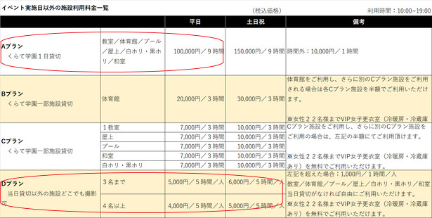 ※くらて学園全館撮影可能利用30or50%OFF券及び平日貸切のご利用について※