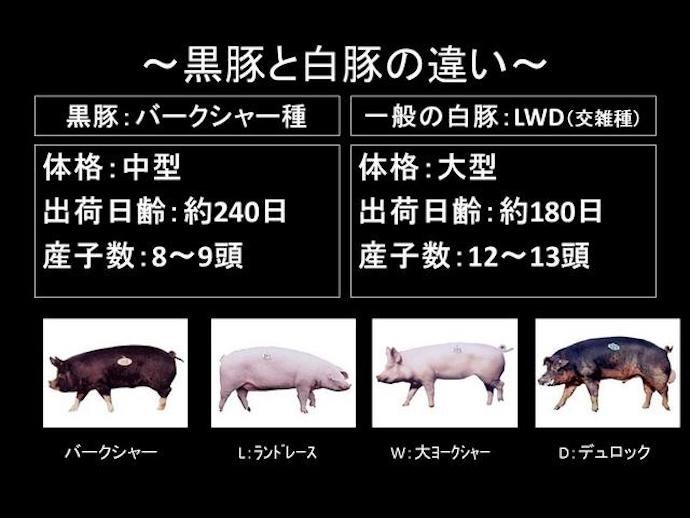 「かごしま黒豚」は、一般的な白豚に比べて飼育日数も2か月以上長く、エサの与え方も違います。