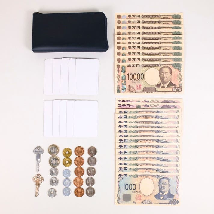 お札25枚 カード10枚 硬貨20枚 鍵2本