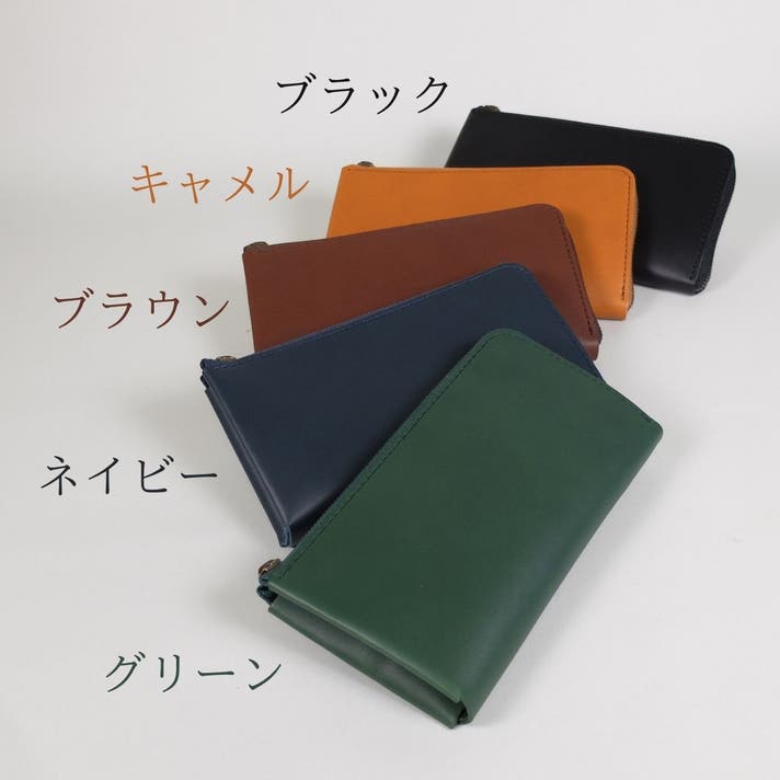 ※財布のカラーはグリーン、ネイビー、ブラウン、キャメル、ブラックの5色から一つお選びください。