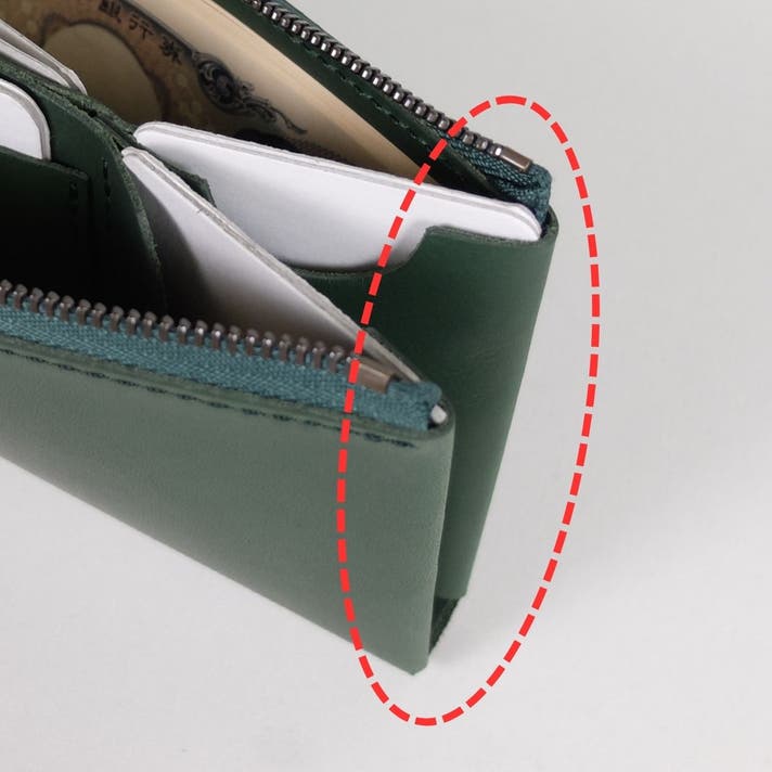 マチ側には縫い目がありませんので、その分お札が入れやすく、かなりの枚数を収納できます。