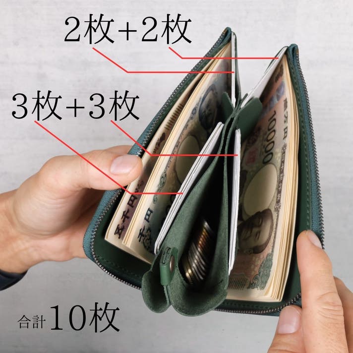 3枚×3枚×2枚×2枚=合計10枚収納可能