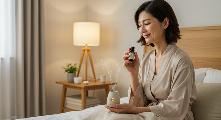 デスクやベットの周りにデュフューザーを設置し、数滴アロマオイルを垂らすと