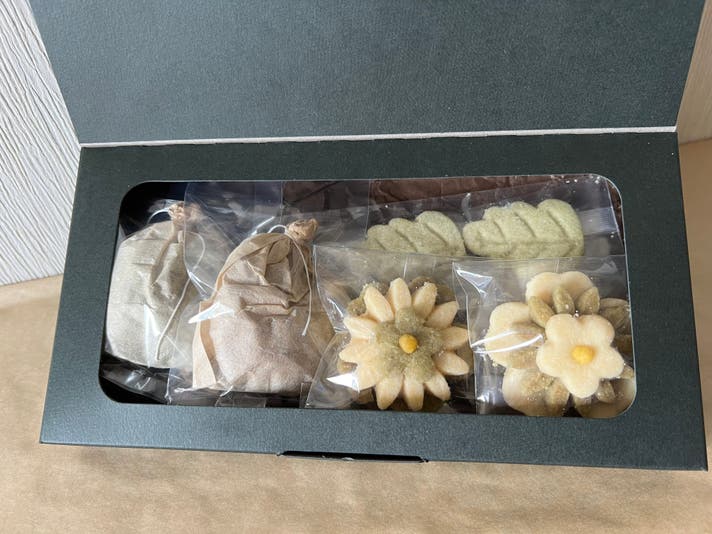 (クロモジクッキー:花x4 + 葉っぱx4)