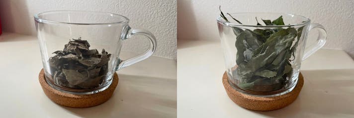 (クロモジティー:蒸した葉x2 + 緑の葉x2)