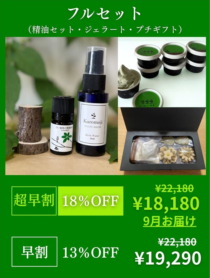 新商品につき開発の工程において、デザイン・仕様・パッケージが一部変更になる可能性もございます。 製造スケジュールについては、現在プロジェクト成功を想定した数で調整しておりますが、想定を上回る応援購入の申し込みがあった場合、製造工程上の都合や配送作業に伴うやむを得ない事情によりお届けが遅れる場合がございます。 上記のようにプロジェクトページに記載している内容に変更がある場合は、できるだけ早く活動レポートなどで共有を行っていく予定です。 原則として、配送遅延に伴う応援購入のキャンセルはできませんが、リターン配送予定月から2ヵ月を超えた場合には、希望者に限りキャンセルにて対応させていただきます。 成分はあくまで標本の範囲になります。季節や蒸留時期により変動することがございますので、あらかじめご了承ください。 最後に、私たちの製品を手に取った皆様に喜んでもらえるよう、こころを込めて作り上げます。 我々の商品がキッカケでクロモジを知ってよかった! と言っていただけることが一番うれしいです。 応援のほどよろしくお願いいたします。