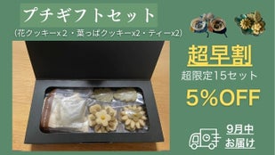 ・プチギフトセット(花クッキーx2・葉っぱクッキーx2・ティーパック x2)x1式
