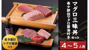 マグロ三昧丼セット【希少部位、まぐろ醤油付き】(4から5人前)50個限定