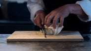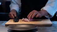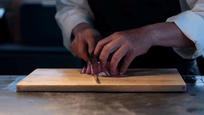 ・両刃包丁は15〜20度の角度で、刃先を3〜4分割し、軽く押さえながら手前に引く動作を繰り返す。