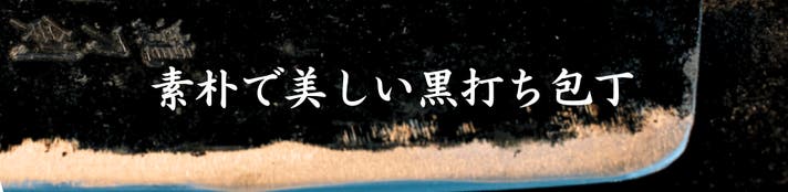 “黒打ち”とは、包丁に施される仕上げのことで、鍛造の過程で黒色の酸化皮膜を形成し、刃を保護するために残しておくものです。通常、刃物の鍛造では刃面全体を磨き上げて輝かせますが、黒打ち包丁は刃先のみを研ぎ、その他の部分は素朴な黒色のまま残します。この仕上げにより、錆びにくくなり、農家や漁師の間で広く使用されています。