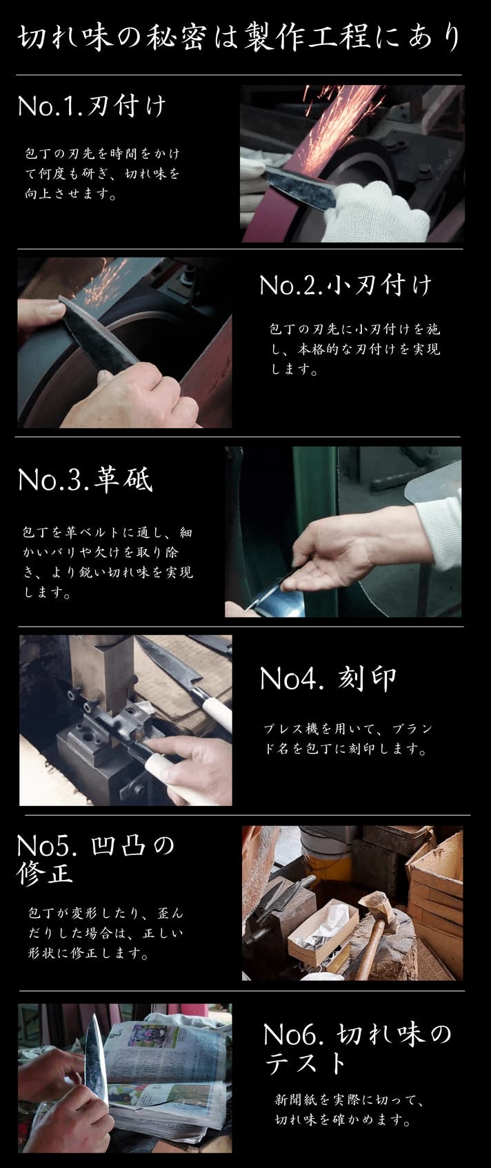 この包丁の切れ味の秘密は、製造工程での何度も行う刃付けにあります。