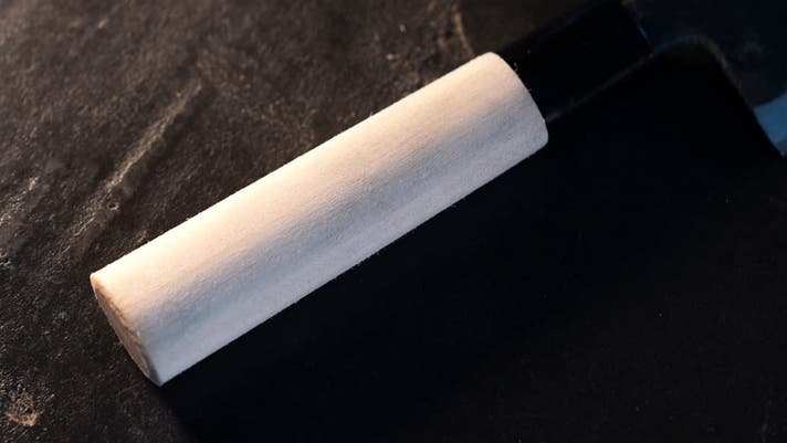 一般的なステンレス包丁より約20%軽く、握りやすい天然木ハンドル。