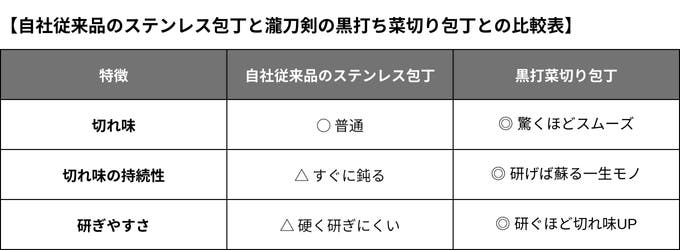 この2つが融合することで、「切れ味の鋭さ」と「長持ちする強さ」を兼ね備えた包丁が誕生しました。