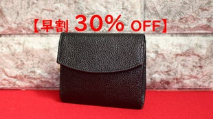 【早割】通常価格の30%OFF価格 黒漆革三つ折り財布