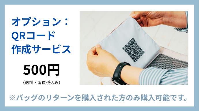 ・QRコードはご自身で作成していただくか、またはオプションとして作成サービスを用意しておりますのでそちらもご利用ください。