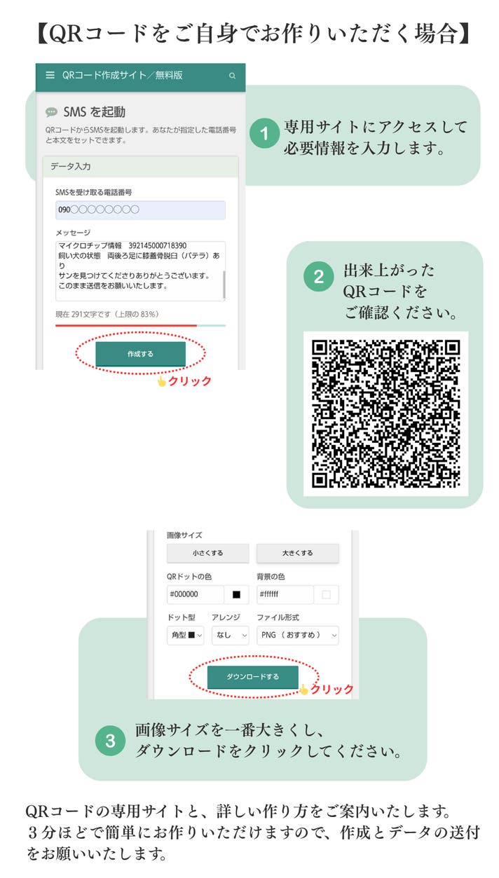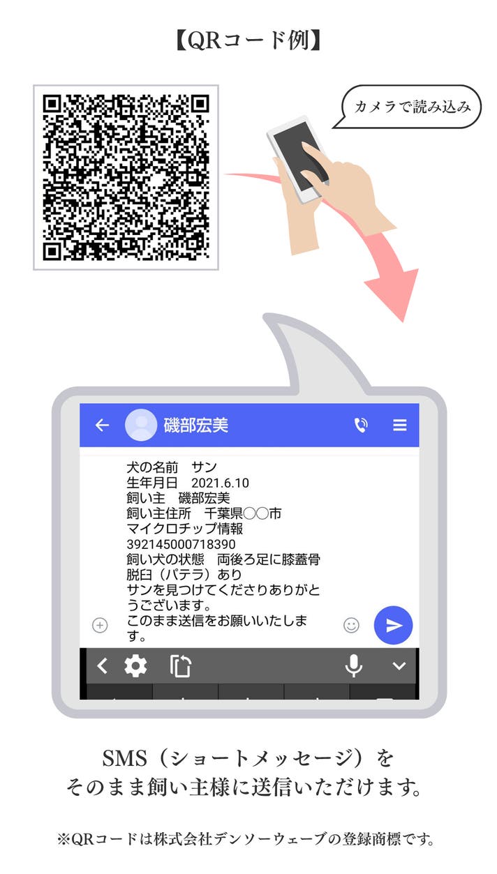 QRコードを活用することで、保護してくれた人がすぐに飼い主さんに連絡できる仕組みを作りました。