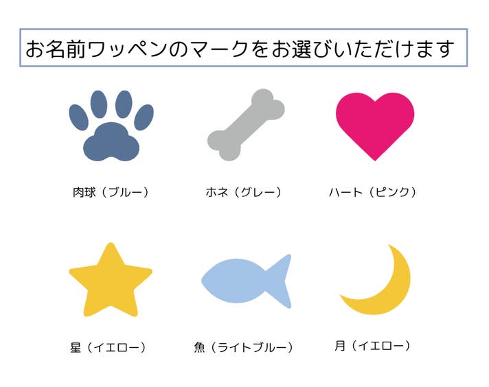 ペットのお名前をお知らせいただき、フォント・名前横のマークをお選びいただきオリジナルのワッペンをお作りします。こちらも着脱可能です。