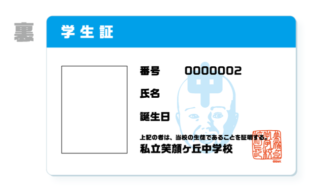 ・私立笑顔ヶ丘中学校の学生証(ナンバリング有り)