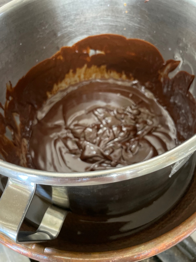ビターチョコレート、ミルクチョコレートを湯煎にかけます。