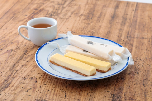 フランス産のキリのクリームチーズをたっぷり使った濃厚なチーズの層とアーモンドのクッキー生地が2層になったスティック状のケーキです。クッキー生地の秘密はアーモンドをたっぷり使い、国産の小麦粉、バターを使った生地を3度焼きしているからです。