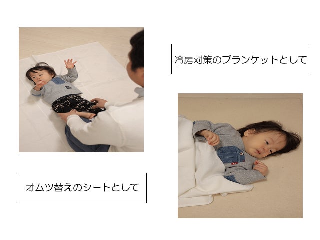 この思いを実現するため、おくるみとして使用する以外にも、アイディア次第でたくさんの使い道があります。
