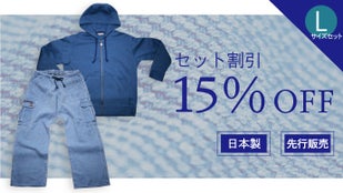 【15%引き】インディゴ染カーゴパンツとパーカー紺青のセット Lサイズ