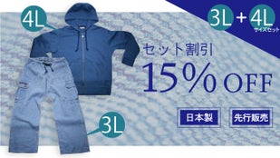 【15%引き】インディゴ染カーゴパンツ3L と パーカー紺青4Lのセット