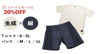 丸首Tシャツ 生成×1点・刺子クライミングパンツ 紺×1点 セット販売