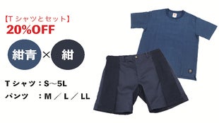 丸首Tシャツ 紺青×1点・刺子クライミングパンツ 紺×1点 セット販売