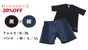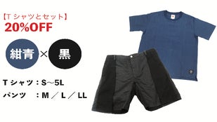 丸首Tシャツ 紺青×1点・刺子クライミングパンツ 黒×1点 セット販売