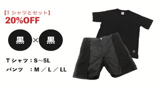 丸首Tシャツ 黒×1点・刺子クライミングパンツ 黒×1点 セット販売