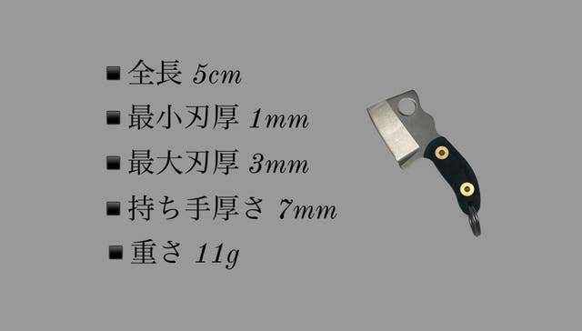 チタンミニ斧はサイズも全長5cmのミニマムサイズなので場所をとりません。