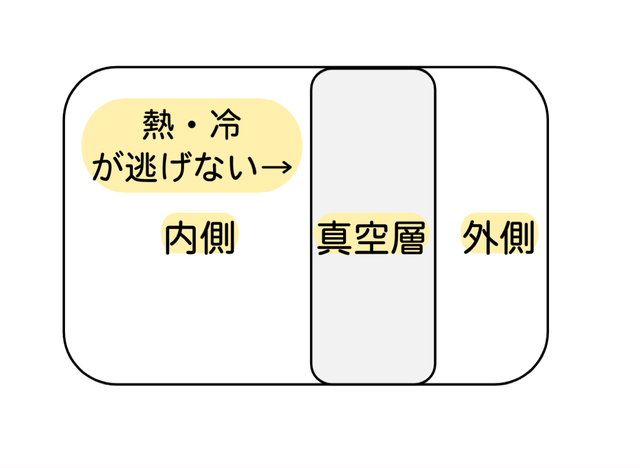 内側の飲み物の温度が、外側に伝わらないので保温・保冷の性能も高くなります。