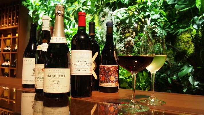 お料理を彩るのは、系列のダイニングバーの豊富なコレクションから厳選して仕入れた、世界各国の銘醸ワインや希少な銘酒たち。