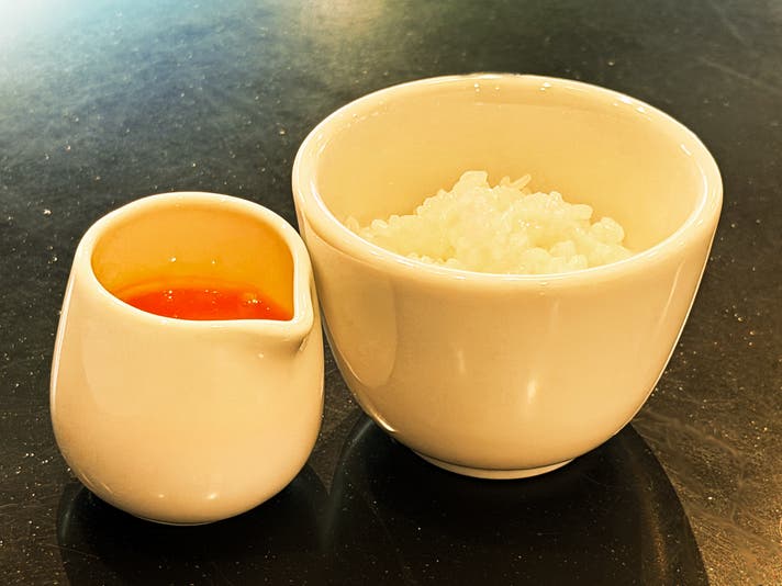 厳選された濃厚な卵の黄身を、炊き立てのご飯に。素材の良さをストレートに味わう、日本人なら誰もが心解ける究極のフィナーレ。