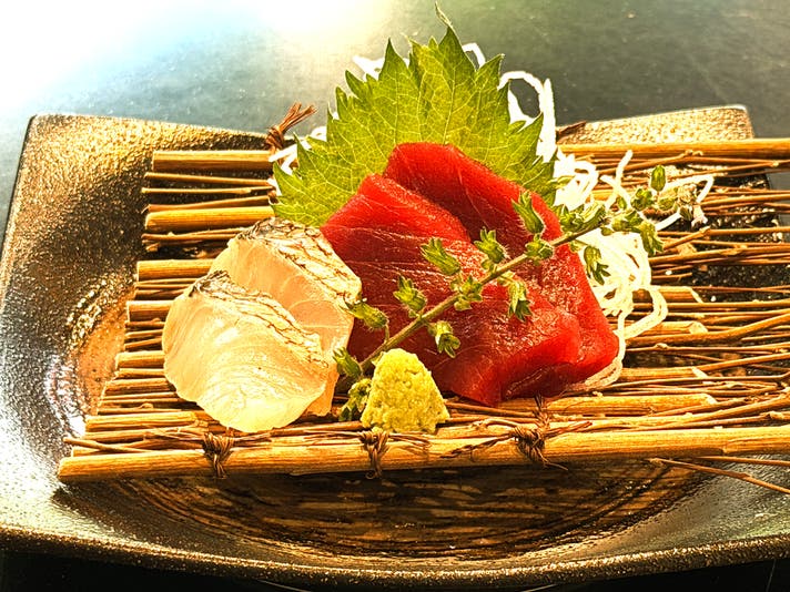 ・豊洲直送 お造り2種(マグロ・真鯛白身昆布締め)