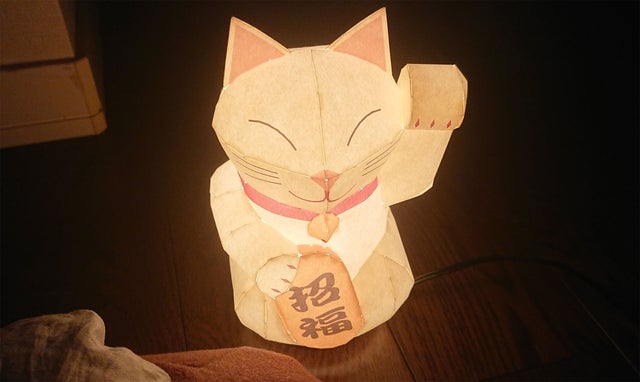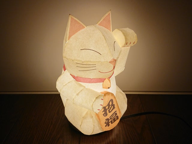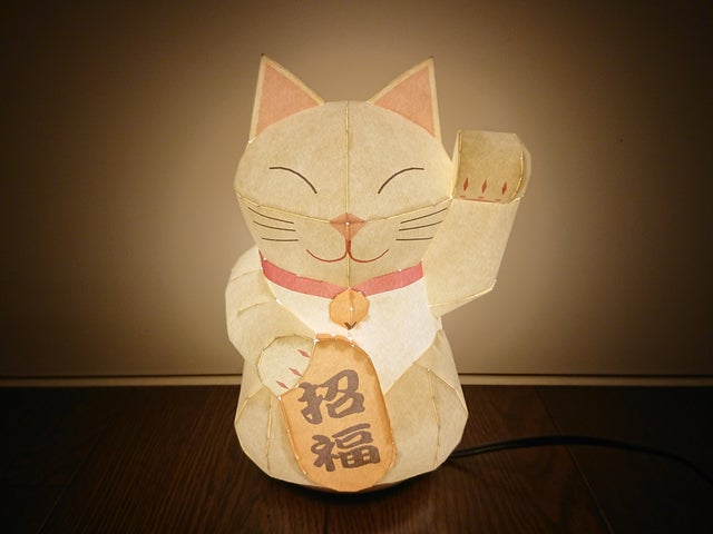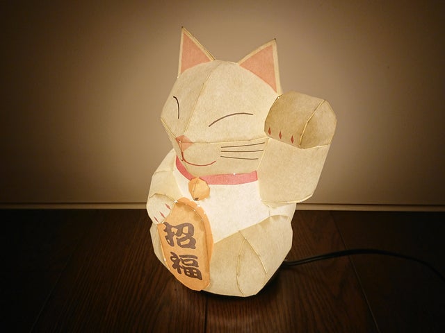 馴染みのある招き猫を可愛くデザイン。また、自分で組み立てるので工作を楽しむことができます。ベッドサイドに置いておくのにちょうど良いランプを提供します。