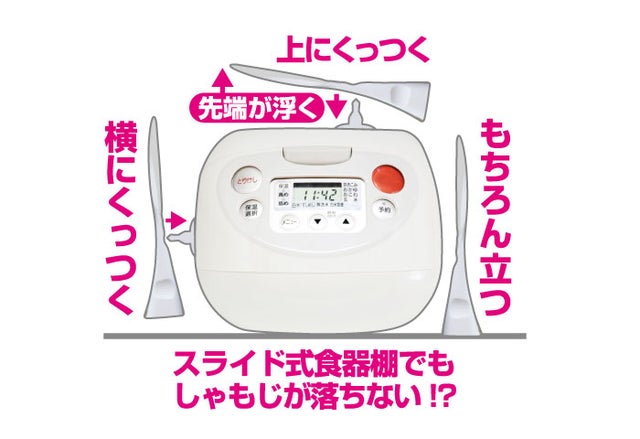 (2)炊飯器の上にしゃもじをくっつけても、しゃもじの先端が浮くので衛生的。