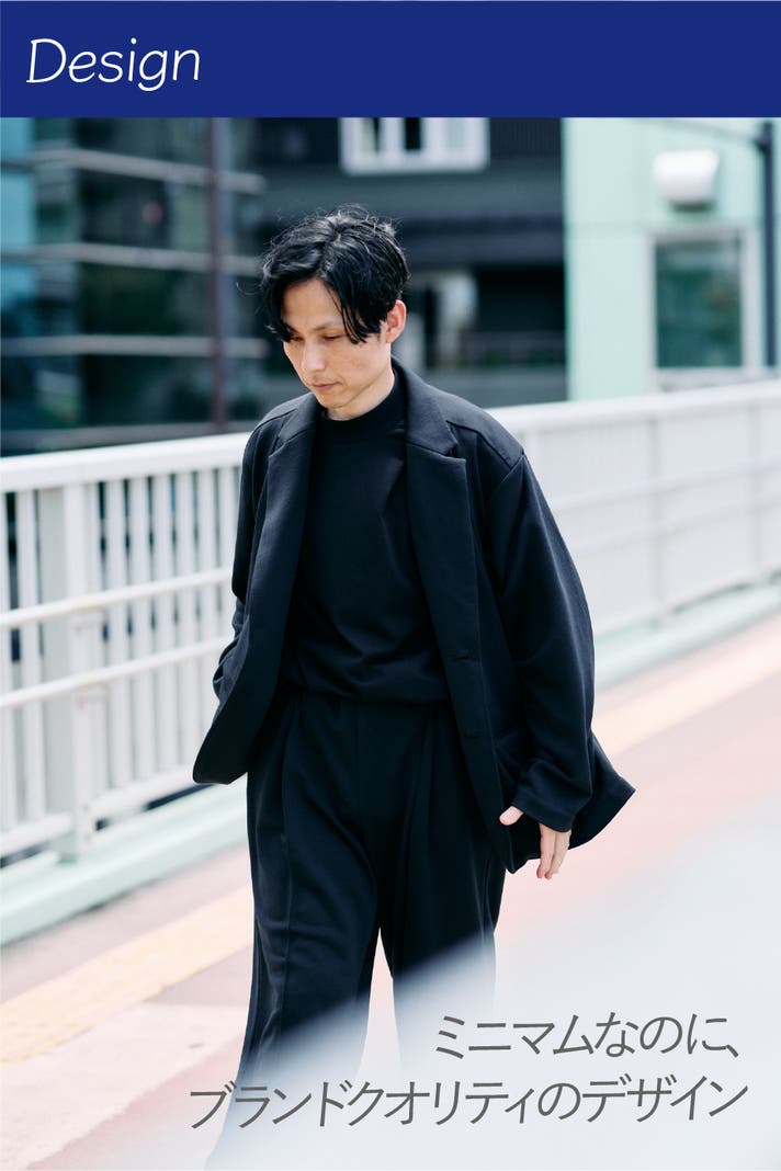 ミニマルな線と“テック見えしない”落ち感で、会議でも移動でもきちんと見えるカジュアルセットアップを目指しました。