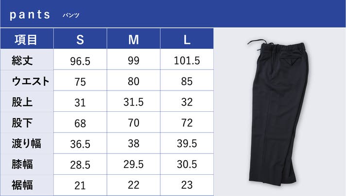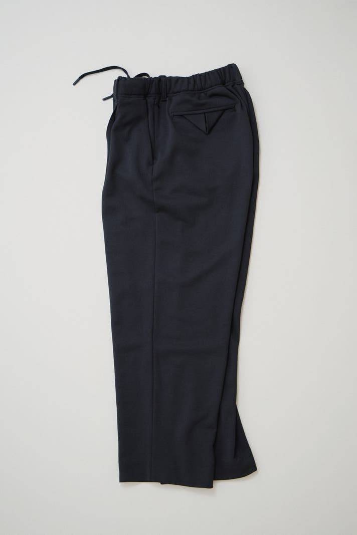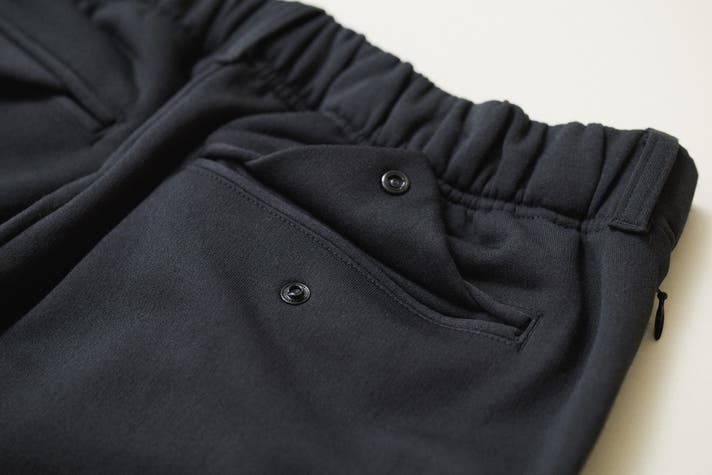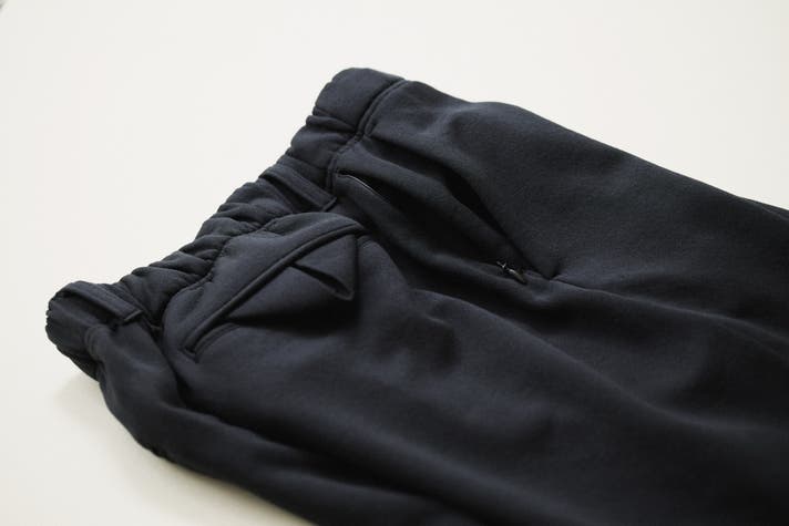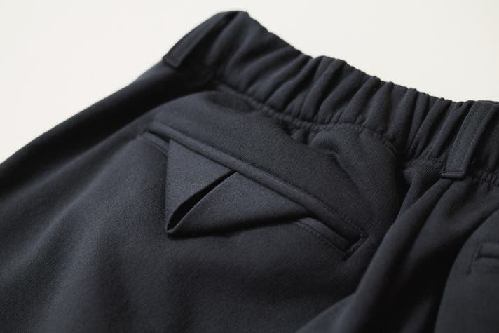 裾の仕上げまで繊細に整え、見た目はスラックスのように上品に。