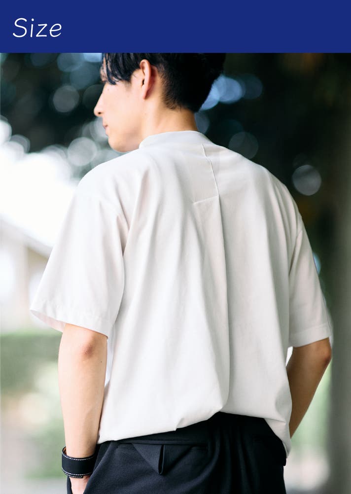 ややゆとりのあるボックスシルエットと縦のIラインで、体の凹凸を拾いにくく、すっきり見えを実現。肩周りの可動域を確保し、PC作業や移動時もつっぱり感を抑えます。
