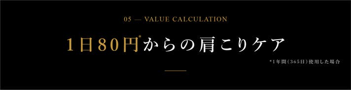 たとえば1年間毎日使うと、1日あたりは約80円。コーヒー1杯よりも手軽な感覚で、本格的な磁気によるこり・血行ケアを日常に。