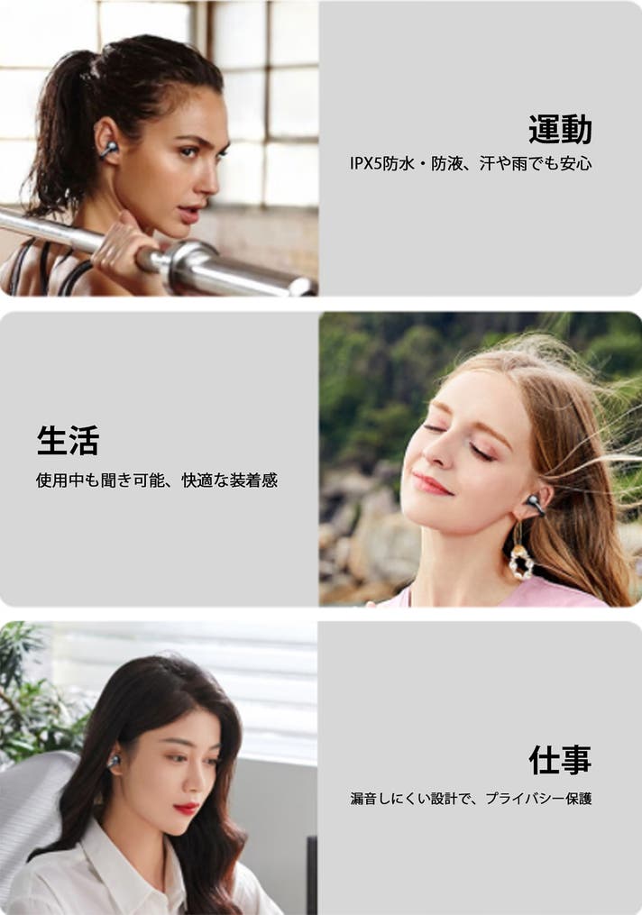 開放型デザインのため、周囲の音を自然に取り込みながら音楽を楽しめ、街ランや在宅ワークのBGMにもぴったり。