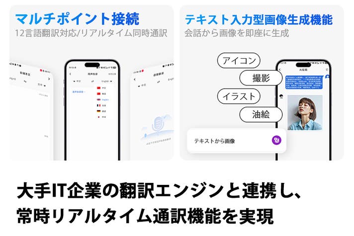英語・中国語・日本語などの会話を、最短 0.5秒 で日本語に自動変換。