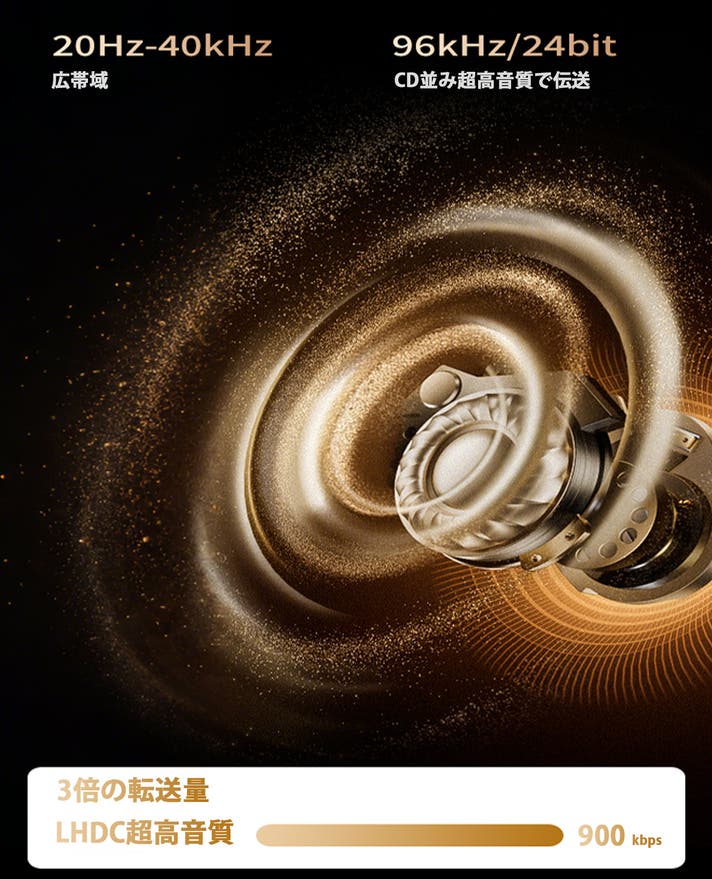 音質:24bit / 96kHz、最大900kbps(一般的なSBCコーデックは約320kbps)