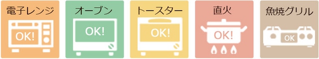 土鍋と同じ耐火性の高い材質でできているので、電子レンジ、オーブン、トースター、ガス直火、魚焼きグリルで使用可能です。