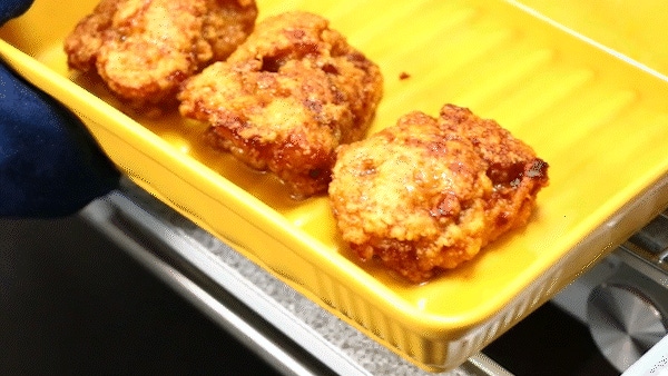 材質の耐熱陶器による遠赤外線効果で、食材の深部まで熱が浸透して、全体がムラなくふっくらと温められます。トースターで温めた唐揚げも、揚げたてのようにジュワジュワと油が溢れます!