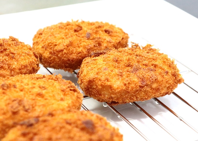 買ってきたお惣菜のコロッケも、この肉汁!!旨味を残して芯までアツアツ!!