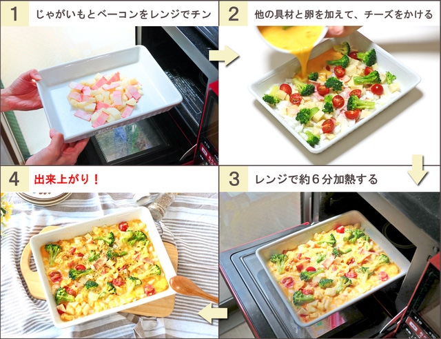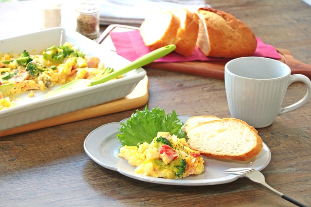 休日のモーニングも、電子レンジを使って簡単におしゃれな彩り野菜のオムレツが作れます。