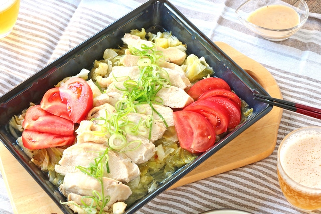 蒸し鶏もレンジでチンするだけ!ササっとヘルシー料理が作りたい時に、食材を並べてチンしてそのまま食卓へ!